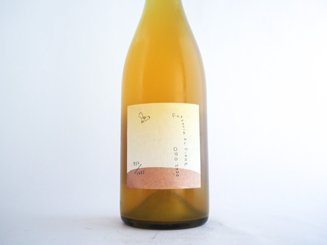 2つ目は、2019 ヴィンテージより仕込んでいる、フラッグシップシリーズの『Oro 2020』。2019 ヴィンテージに比べ、少しだけ醸しを長めにとったこともあり、酸化熟成の要素もある、オレンジワインのよう。味わいも、程よいアルコール感や、ボリューム、醸しによる複雑み、旨味などが相まった仕上がりです。使用されるブドウは山形県高畠町の大野 正敏さんのシャルドネです。伸びのある心地よい酸や、古樽の中で補酒をせずに、ただひたすらタイミングを待った酸化熟成のニュアンスなどを感じられます。