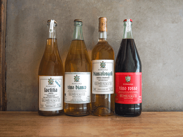 醸造はサグランティーノを除く全てのワインは、プラスティック桶(解放桶)にて自然酵母のみで発酵を開始。フィルターや清澄作業は一切行わず、亜硫酸もいかなる段階でも使わずにボトル詰めします。この土地が育む果実をそのままに、フォンゴリの歴史ともいうべき歩みをストレートに表現したワイン造りを推し進めている。伝統である曽祖父のワイン造りをベースとし、彼らにしか生み出せない味わいを追い求め、自然のままのワイン造りへと変革を開始したフォンゴリ。5年に及ぶ長い準備期間を経てリリースされたこの(新しい)伝統のワインは、2015年が初リリースとなります。